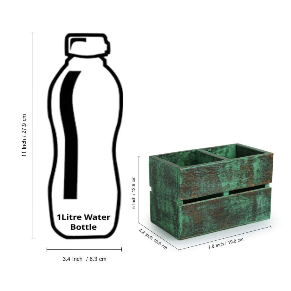 Material: Mango Wood | Size (inches): 7.8(L) x 4.2(W) x 5(H) | Size (cms): 20(L) x 10.5(W) x 12.5(H) | Weight: 0.400 Kgs | Finish: Antique Rustic with Burnt Wood Grain Pattern | Included Pieces: 1 Cutlery Holder | Handcrafted in India (Moradabad)
