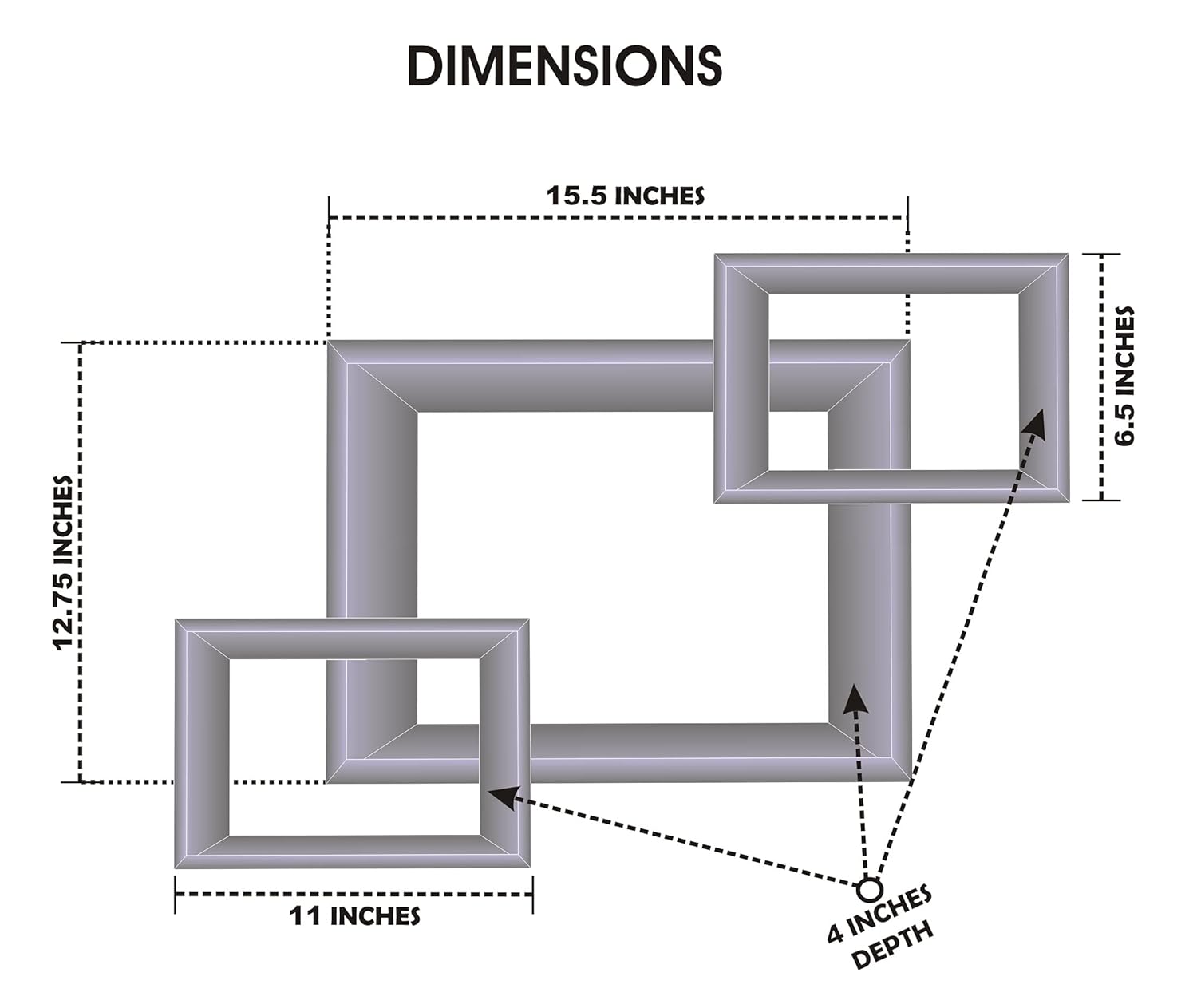 Material: Premium Quality MDF  | Weight: 1.500 Kgs   Finish: Polished White Finish   Included Pieces:  Wall Mountable Intersecting Rectangular Layout with 3 Shelves, Screw & Wall Plug   Handcrafted in India (Moradabad)
