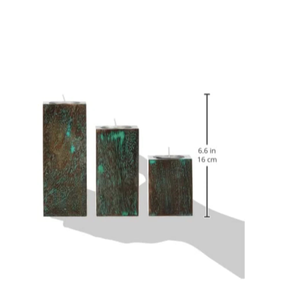 Material: Mango Wood | Size (inches): Large - 5.9(H), Medium - 4.5 (H) & Small - 2.3(H) | Size (cms): Large - 15(H), Medium - 11.4(H) & Small - 7.1(H) | Weight: 0.600 Kgs | Finish: Teal Blue (Hand-painted) | Included Pieces: 3 Candle Stands (Candles not included) | Handcrafted in India (Moradabad)